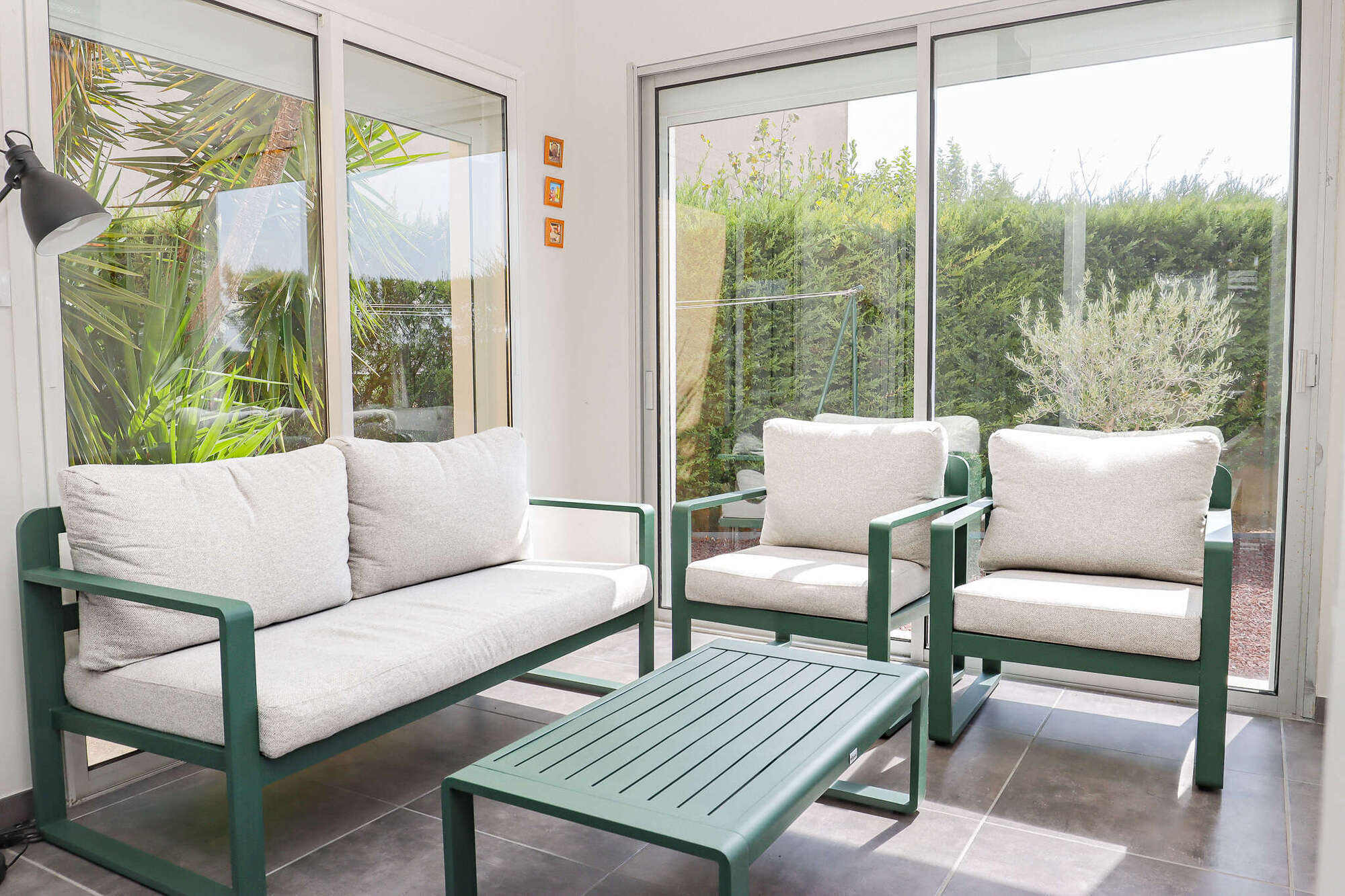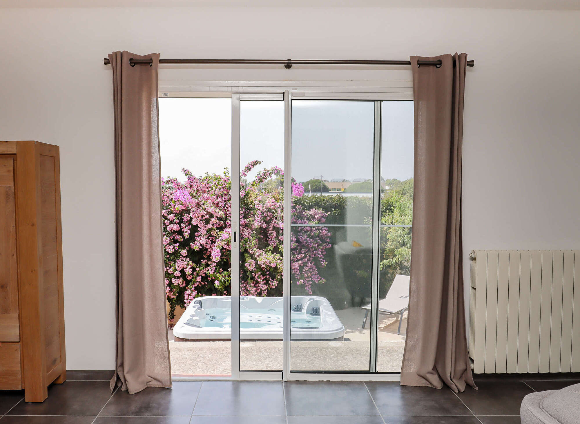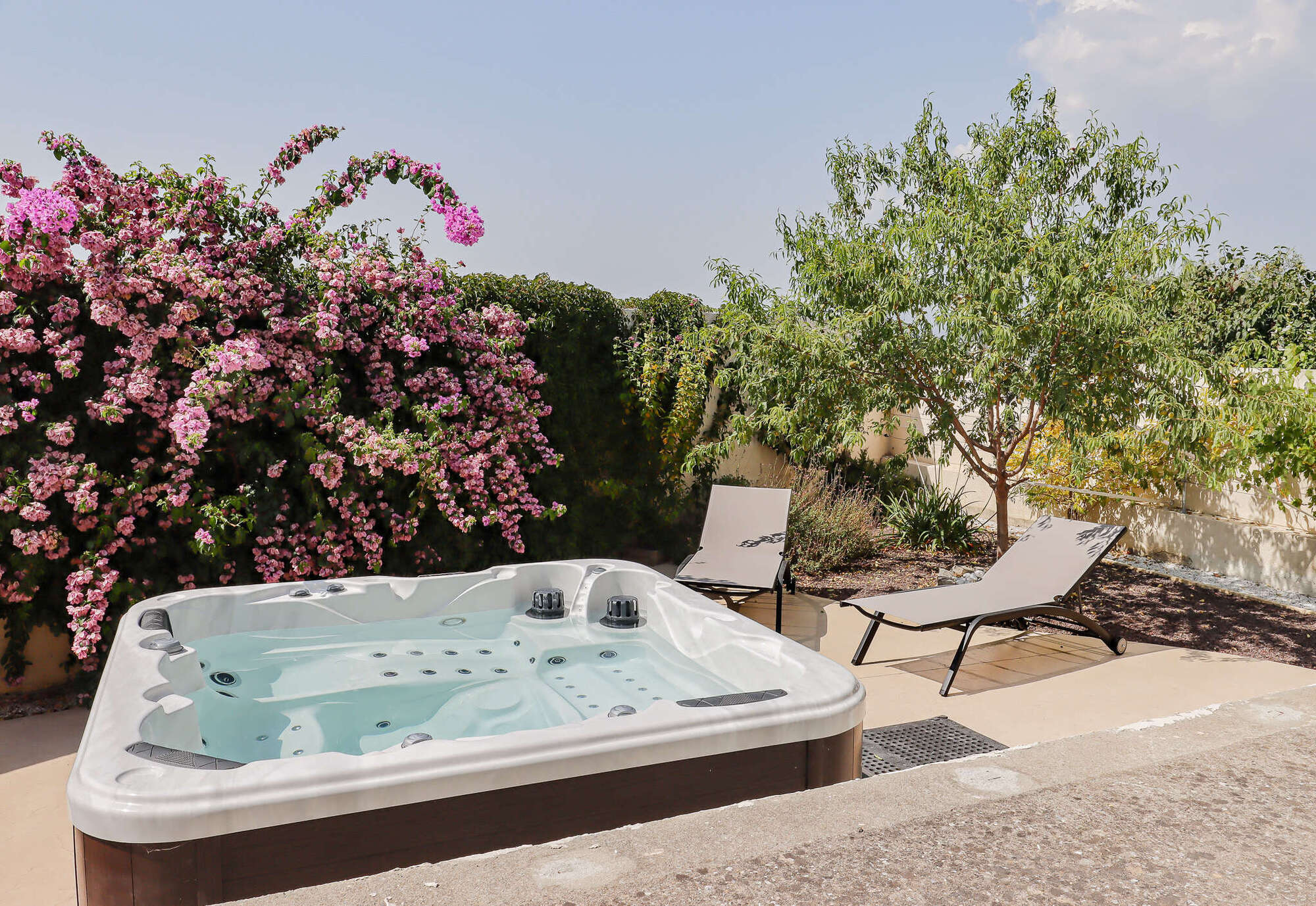 La maison comprend un jardin avec mobilier d'extérieur et un garage pouvant abriter vos vélos, motos ou votre voiture et un jacuzzi privatif.