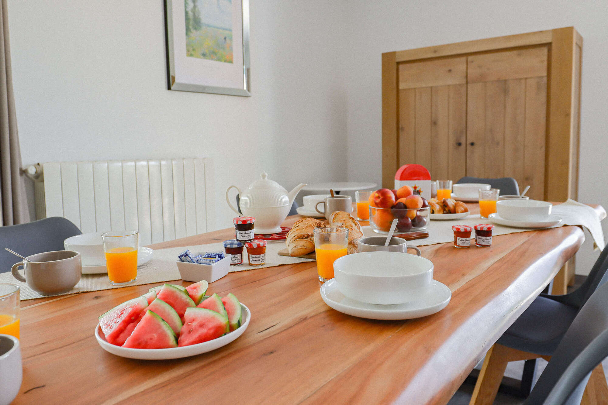 Les 3 chambres sont réparties en 2 lits de 180cm (possibilité de les séparer en 2 lits de 90cm) et 1 lit de 160cm.