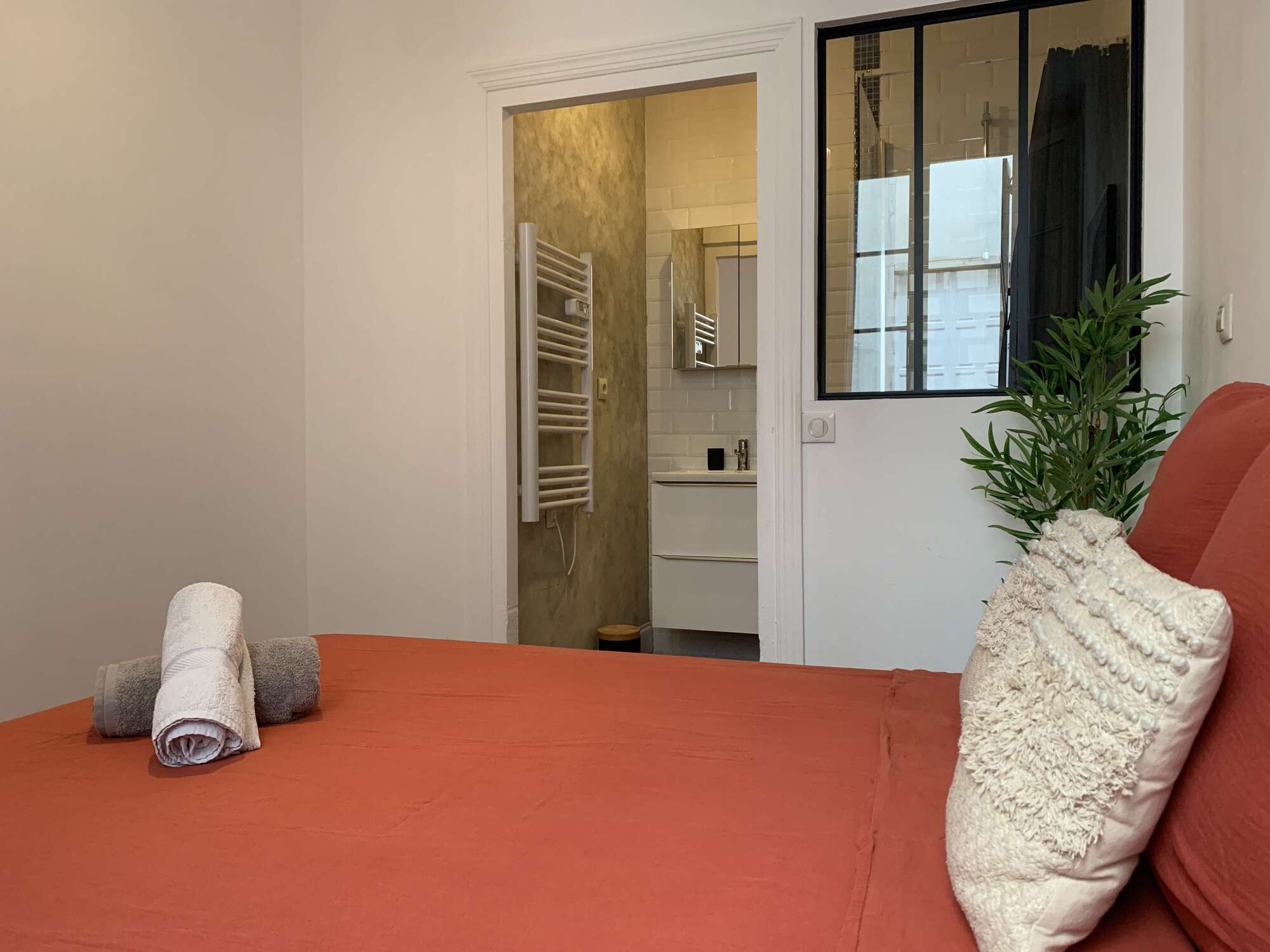 Le Petit Balcon de Verdun comprend 1 chambre avec salle de bain attenante et un grand séjour avec un vrai canapé-lit et se trouve à proximité immédiate des commerces, restaurants et parking.