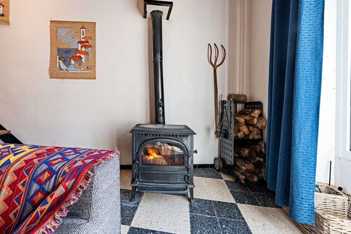 La cuisine ainsi que la pièce à vivre se situent à l'étage inférieur de la maison. Le poêle à bois réchauffera vos soirées d'hiver. Des jeux de société sont mis à votre disposition pour vous permettre de passer d'agréables moments en famille ou entre amis.